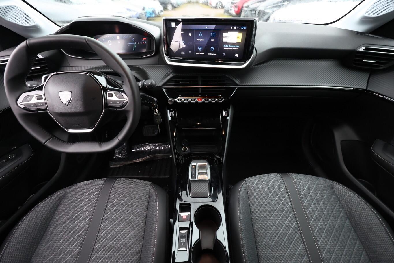 Sicht & Navigations-Paket (Multifunktionsanzeige mit HD Touchscreen-Farbdisplay 10 Zoll / Navigationssystem i-Connect Advanced / USB-Anschlüsse (Typ C und Typ A) / USB-Schnittstelle / Rückfahrkamera mit 360° Umgebungsansicht / Peugeot Connect-Box / SOS-Taste (Notruf für Lokalisierung Fahrzeug) / Fahrassistenz-System: Totwinkel-Assistent (SAM)), Fahrassistenz-System: Spurassistent, Freisprecheinrichtung Bluetooth, Kombiinstrument digital (10"), Leseleuchten vorn, LM-Felgen 16", Reifen 195/55 R16, Schadstoffarm nach Abgasnorm Euro 6e (EU6 EA), Smartphone-Schnittstelle (Apple CarPlay & Android Auto), Fensterheber elektrisch hinten, sequentiell, mit Einklemmschutz (Fensterheber elektrisch vorn / Fensterheber elektrisch vorn links), Radioempfang digital (DAB+) (Radioempfang digital), Sitzbezug / Polsterung: Stoff/Kunstleder (Innenausstattung: Ziernähte farbig), Zentralverriegelung mit Fernbedienung (Fernbedienung für Zentralverriegelung), Außenspiegel elektr. verstell- und heizbar, beide (Außenspiegel elektr. verstell- und heizbar, links / Außenspiegel elektr. verstell- und heizbar, rechts), Außenspiegel mit Abdeckkappen schwarz, Elektr. Bremskraftverteilung, Frontscheibe geräuschdämmend, Innenraumfilter: Staub- und Pollenfilter, Innenspiegel mit Abblendautomatik, Karosserie: 5-türig, Kartentasche an Vordersitze, Mild-Hybrid 81 kW (Motor 1,2 Ltr. - 74 kW), Otto-Partikelfilter (GPF), Parkbremse elektrisch, Reifen-Reparaturkit, Sitz vorn links höhenverstellbar, Türgriffe außen Wagenfarbe, Warnanlage für Sicherheitsgurte, Anti-Blockier-System (ABS), Fahrassistenz-System: Aktiver Notbrems-Assistent (Active Safety Brake), Antischlupfregelung (ASR), Elektron. Stabilitäts-Programm (ESP, Bosch), Getriebe Automatik - Doppelkupplungsgetriebe (6-Stufen, Hybrid), Klimaautomatik, Airbag Beifahrerseite abschaltbar, Airbag Fahrer-/Beifahrerseite, Isofix-Aufnahmen für Kindersitz, Mittelarmlehne vorn, Rücksitzlehne geteilt/klappbar, Seitenairbag vorn, Seitenscheiben hinten und Heckscheibe dunkel getönt, Bordcomputer, Fahrmodusschalter, Fahrassistenz-System: Berganfahrhilfe, Fahrassistenz-System: Verkehrszeichenerkennung, Geschwindigkeits-Regelanlage (Tempomat) inkl. Geschwindigkeits-Begrenzeranlage, Lenkrad (Leder), Lenkrad mit Multifunktion, Servolenkung elektrisch, Außenspiegel elektr. anklappbar, Blinkleuchte in Außenspiegel integriert, Einschaltautomatik für Fahrlicht, Scheibenwischer mit Regensensor, Scheinwerfer Eco-LED, Tagfahrlicht LED, Einparkhilfe vorn und hinten, Fahrassistenz-System: Müdigkeitserkennungs-Sensor, Reifendruck-Kontrollsystem