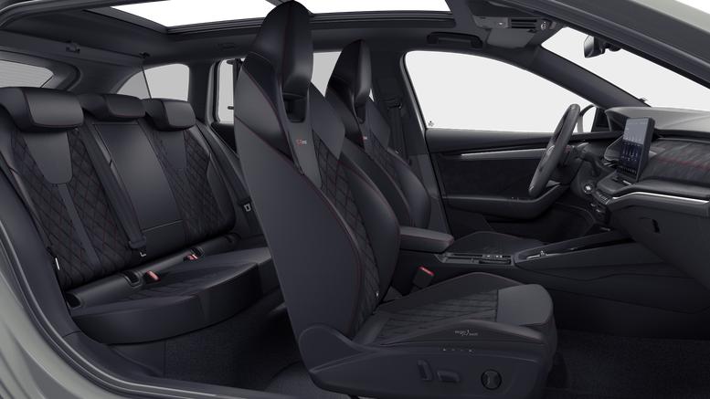 • Design Selection RS Lounge (Elektrisch einstellbare Vordersitze mit herausziehbarer Beinauflagenverlängerung / Lendenwirbelstützen vorn elektrisch einstellbar mit Massagefunktion / Interieur aus Microfaser, Leder und Kunstleder, kombiniert mit hochwertigen Materialien / Elektrisch einstell-, anklapp- und beheizbare Außenspiegel
