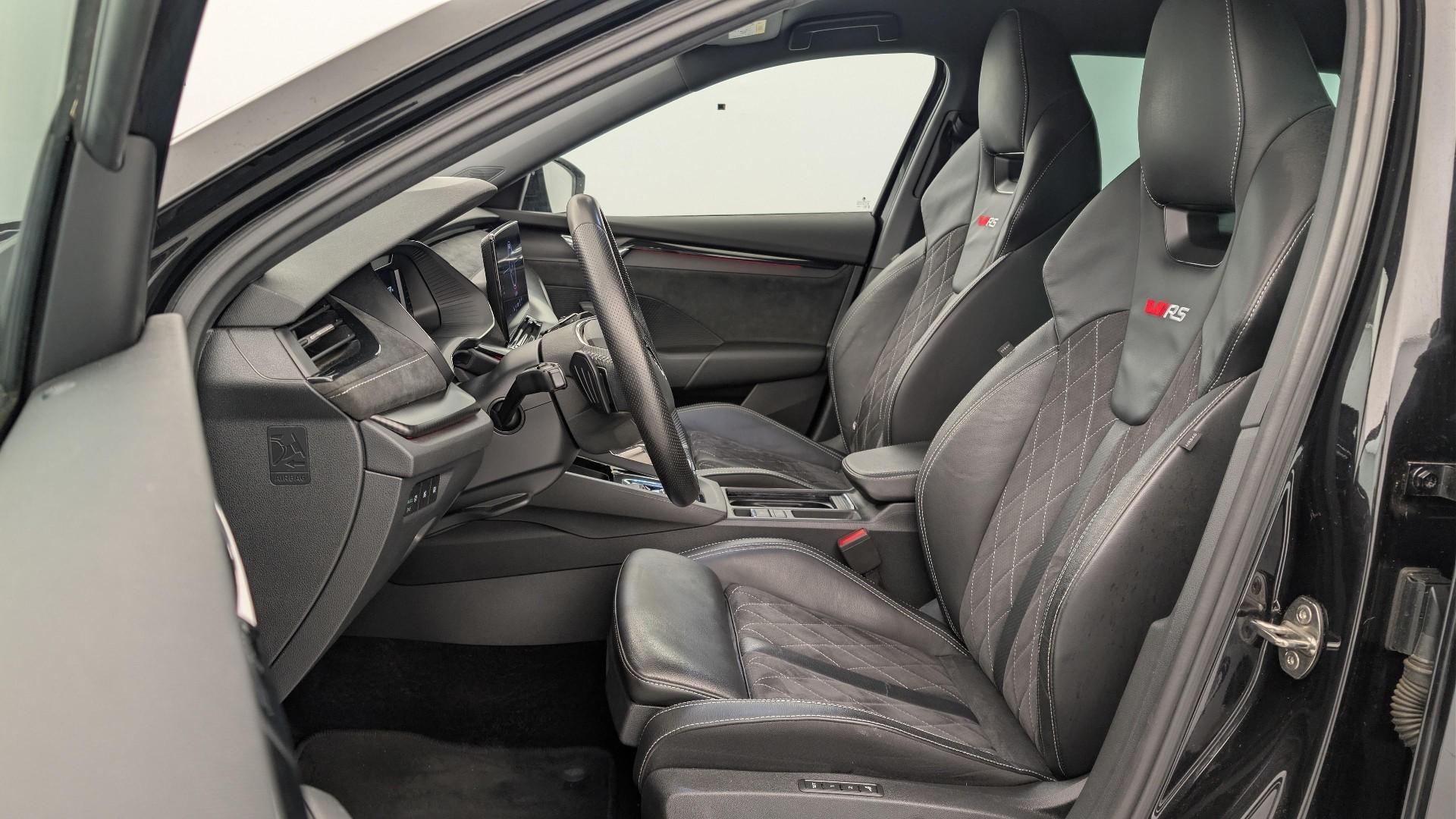 • RS-Elektropaket mit Sportpolsterung ,,Alcantara": Alcantara-Polsterung mit Sportsitzen Vordersitze mit Massagefunktion Side Assist (Toter-Winkel-Assistent bis 70 m) mit Rear Traffic Alert Elektrisch verstellbare Fahrer- und Beifahrersitze mit Memory-Funktion und Sitzflachen-Tiefenverstellung Aussenspiegel mit Memory-Funktion, elektrisch verstellbar, beheizbar, elektrochromatisch (Fahrerseite), elektrisch einklappbar und mit Bodenbeleuchtung