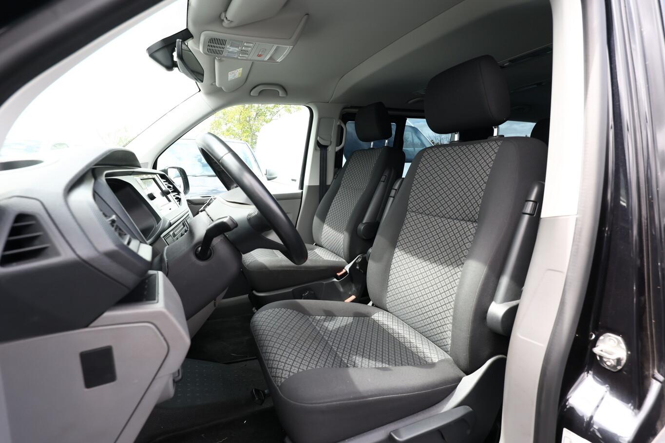 Klimaautomatik Climatronic (Fahrerhaus + Lade-/Fahrgastraum), Lackierung: Perleffekt-Lackierung, Stoßfänger in Wagenfarbe, Fahrassistenz-System: Einparkhilfe vorn und hinten, Sitz-Paket: 8-Sitzer, 2-3-3 (2 Einzelsitze, 2er-Sitzbank und Einzelsitz, 3er-Sitzbank) (Sitze im Lade-/FG-Raum: 1.Reihe, 2er-Sitzbank + 1 Einzelsitz / Sitze im Lade-/FG-Raum: 2.Reihe, 3er-Sitzbank (Wickelfeder)), Audiosystem Composition Colour (Radio/CD-Player, MP3-Wiedergabefunktion) (Mobile Online Dienste App-Connect / Multimedia-Schnittstelle 2 x USB (Typ C) vorn), Sitze im Fahrerhaus: Fahrer- und Beifahrersitz heizbar, Lenkrad (Leder) mit Multifunktion, Nebelscheinwerfer mit integriertem Abbiegelicht, Fenster im Lade-/FG-Raum: - schiebbar vorn, feststehend hinten links, Fenster im Lade-/FG-Raum: - schiebbar vorn, feststehend hinten rechts, Winter-Paket (Anzeige für Waschwasserstand / Scheibenwaschdüsen beheizt / Scheibenwaschdüsen beheizt und Anzeige für Waschwasserstand / Frontscheibe heizbar), Ausstattungs-Paket Licht + Sicht (Innenspiegel mit Abblendautomatik / Automatische Fahrlichtschaltung / Lichtassistent (Coming Home, Leaving Home) / Regensensor), Multifunktionsanzeige Plus (Fahrassistenz-System: Müdigkeitserkennungs-Sensor), Sitze im Fahrerhaus: Fahrer- und Beifahrersitz mit Armlehnen vorn (Sitze im Fahrerhaus: Armlehnen, Beifahrersitz / Sitze im Fahrerhaus: Armlehnen, Fahrersitz), Notrufsystem, Reifendruck-Kontrollsystem, Fahrwerk tiefergelegt, Sitze im Fahrerhaus: Fahrer- und Beifahrersitz höhenverstellbar (Sitze im Fahrerhaus: Beifahrersitz höhenverstellbar / Sitze im Fahrerhaus: Fahrersitz höhenverstellbar), Sitze im Fahrerhaus: Lendenwirbelstützen Fahrer- und Beifahrersitz (Sitze im Fahrerhaus: Lendenwirbelstütze Beifahrersitz / Sitze im Fahrerhaus: Lendenwirbelstütze Fahrersitz), Steckdosen (12V-Anschluß) im Fahrerhaus (2 Stück), Isofix-Aufnahmen für Kindersitz an Rücksitz, Lautsprecher (6), Navigation in Verbindung mit dem Smartphone (über Apple CarPlay / Android Auto /...), Reifen 215/65 R16, Service-/Wartungsintervall 2 Jahre / 30.000km, Wegfahrsperre elektronisch, Bodenbelag: Gummi (vorn und hinten) (Bodenbelag im Fahrerhaus: Gummi / Bodenbelag im Lade-/Fahrgastraum Gummi), Elektron. Stabilitäts-Programm (ESP) mit Bremsassistent, ASR/ABS, EDS und Berganfahrhilfe (Fahrassistenz-System: Berganfahr-Assistent), Außenspiegel konvex, links, Außenspiegel konvex, rechts, Dachverkleidung Himmel Komfort mit Luftausströmer, Doppelscheinwerfer, Frontscheibe Verbundglas, Handschuhfach abschließbar, Handschuhfach beleuchtet, Heckklappe mit Verglasung, Heckscheibe heizbar, mit Wischanlage, Innenleuchten im Lade-/FG-Raum: LED, Innenraumfilter: Pollenfilter, Karosserie/Aufbau: Bus, Karosserievariante: Normaldach, Kraftstofftank: 70 Ltr., Kühlergrill mit Chromleisten, Lenksäule (Lenkrad) verstellbar, Leuchtweitenregelung, Motor 2,0 Ltr. - 110 kW TDI, Nichtraucher-Paket, Radioempfang digital (DAB+), Radstand 3000 mm, Reifen-Reparaturkit, Schadstoffarm nach Abgasnorm Euro 6d, Schiebetür Lade-/Fahrgastraum rechts, Sitzbezug / Polsterung: Stoff, Warnanlage für Sicherheitsgurt (Fahrerseite), Zul. Gesamtgewicht 3,08 t, Mobiltelefon Schnittstelle Bluetooth, Anti-Blockier-System (ABS), Fahrassistenz-System: Bremsassistent (HBA), Antriebs-Schlupfregelung (ASR), Antriebsart: Frontantrieb, Getriebe 7-Gang - Doppelkupplungsgetriebe DSG, Zuheizer, Airbag Beifahrer abschaltbar, Airbag Fahrer-/Beifahrerseite, Fensterheber elektrisch, Verzurrösen Laderaum, Zentralverriegelung mit Fernbedienung und Innenbetätigung, Wärmeschutzverglasung, Servolenkung elektro-mechanisch, Außenspiegel elektr. verstell- und heizbar, Tagfahrlicht, Fahrassistenz-System: Seitenwind-Assistent, Rußpartikelfilter, Start/Stop-Anlage Motor