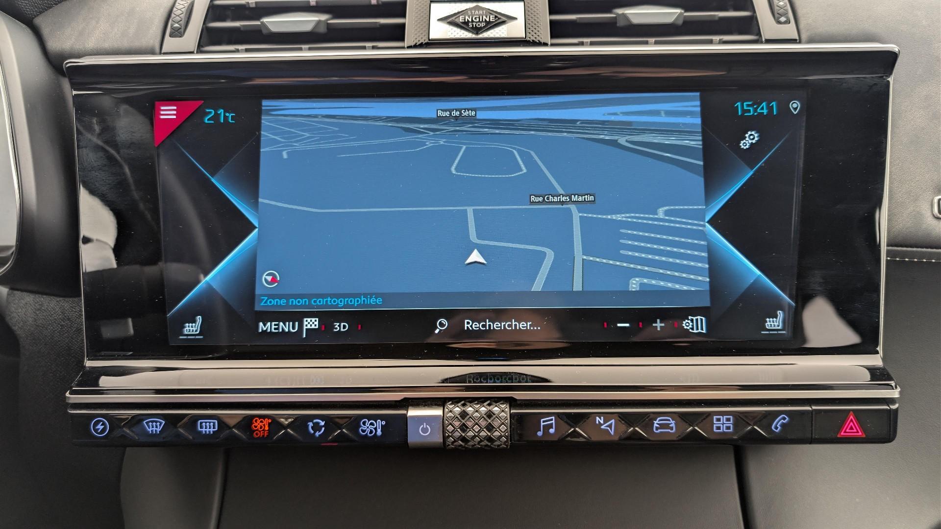 • Innenausstattung OPERA Schwarz Art Basalt : Beheizbare Vordersitze Steuerung Cristal WindschutzscheibeBeheizbare Windschutzscheibe Vordersitze mit Massagefunktion Beluftete Vordersitze Turschwellen in Metall mit DS-Trame Lederlenkrad mit Ziernahten in Tramontana Kuhlergrill in glanzendem Schwarz Schalthebelknauf in Glattleder Guillochierung "Clous de Paris" Plip mit Einsatz in Chrome Dekor Nappaleder Schwarz Art Basalt mit "Perlpunkt"-Nahten Kasseler Erde Sitze Nappaleder Schwarz Art Basalt mit Armbandkonfektion Aussenspiegel elektrisch einklappbar und mit Memory-Funktion und mit Bodenprojektion des DS-Logos.